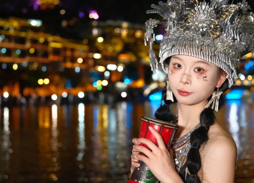 ![]() ![]() ![]() 夜幕下,沿江兩岸,燈火闌珊,人氣爆棚,處處都是穿著“苗族”服裝的少女。她們一遍遍地拍攝著各種誘人的鏡頭,盡情地享受這和平環(huán)境下詩意般的生活。 ![]() ![]() ![]() ![]() ![]() 第二站 墨戎苗寨 墨戎苗寨 墨戎苗寨,位于鳳凰古城河及張家界景區(qū)之間,面積約20平方千米,始建于500多年前。墨戎苗寨的歷史悠久,經過上百年的民族歷史文化沉淀,更顯得厚重迷人,在云霧繚繞的大山深處、層層疊疊的吊腳樓,蔓延在山坡上,頗有人間仙境之感。 按照苗族的習俗,進入苗寨前,先要對歌、喝迎門酒。迎門酒是苗族人用來歡迎遠道而來的朋友,當喝完一碗之后還會繼續(xù)倒上一碗,如若喝不下可以提前揮手致意,進入寨門。